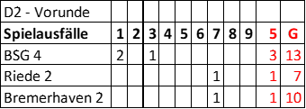 Auf dem Plan standen die Heimspiele Bremerhaverner SG 1 – Delmenhost 3 und Bremerhavener SG 2 – Bremer SG 4.