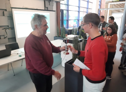 Die vier Erstplatzierten des Turniers erhielten einen Geldpreis. Mit einem Pokal ausgezeichnet wurden Hendrick Behrends (linkes Bild), als Bremerhavener Hochschulmeister 2024 und Alexander Wild von den SF Leherheide (rechtes Bild) als bester Schüler Bremerhavens.
